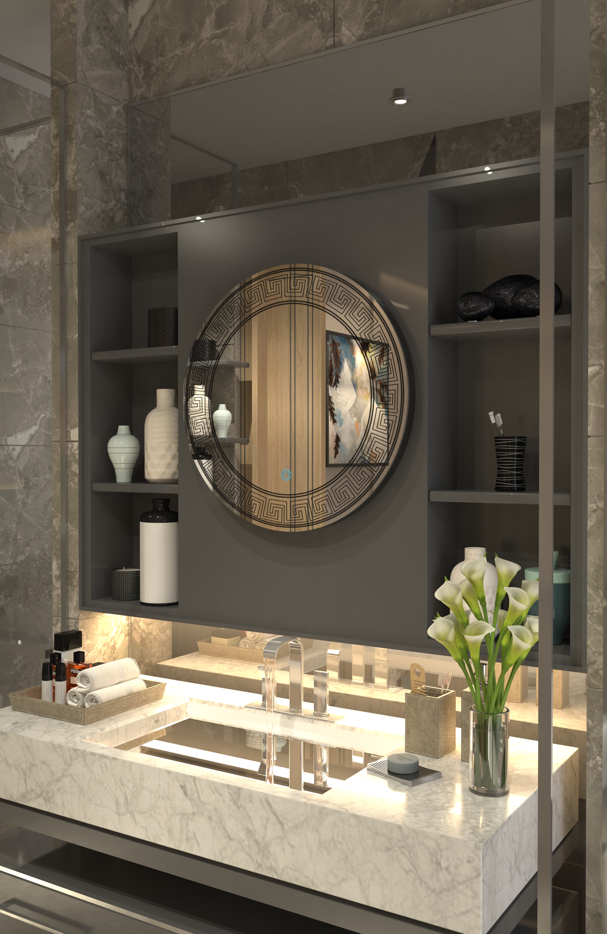 Versace Işıltısı: Lüks Desenli Minimalist Özel Tasarım Ayna